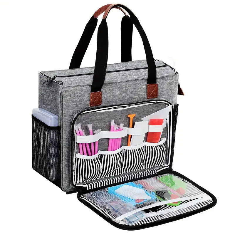 Neem je diamond painting hobby overal mee naartoe met deze stijlvolle en praktische Diamond Painting Reistas! Gemaakt van duurzaam polyester is deze lichtgewicht maar stevige tas ontworpen om al je diamond painting benodigdheden netjes op te bergen.
